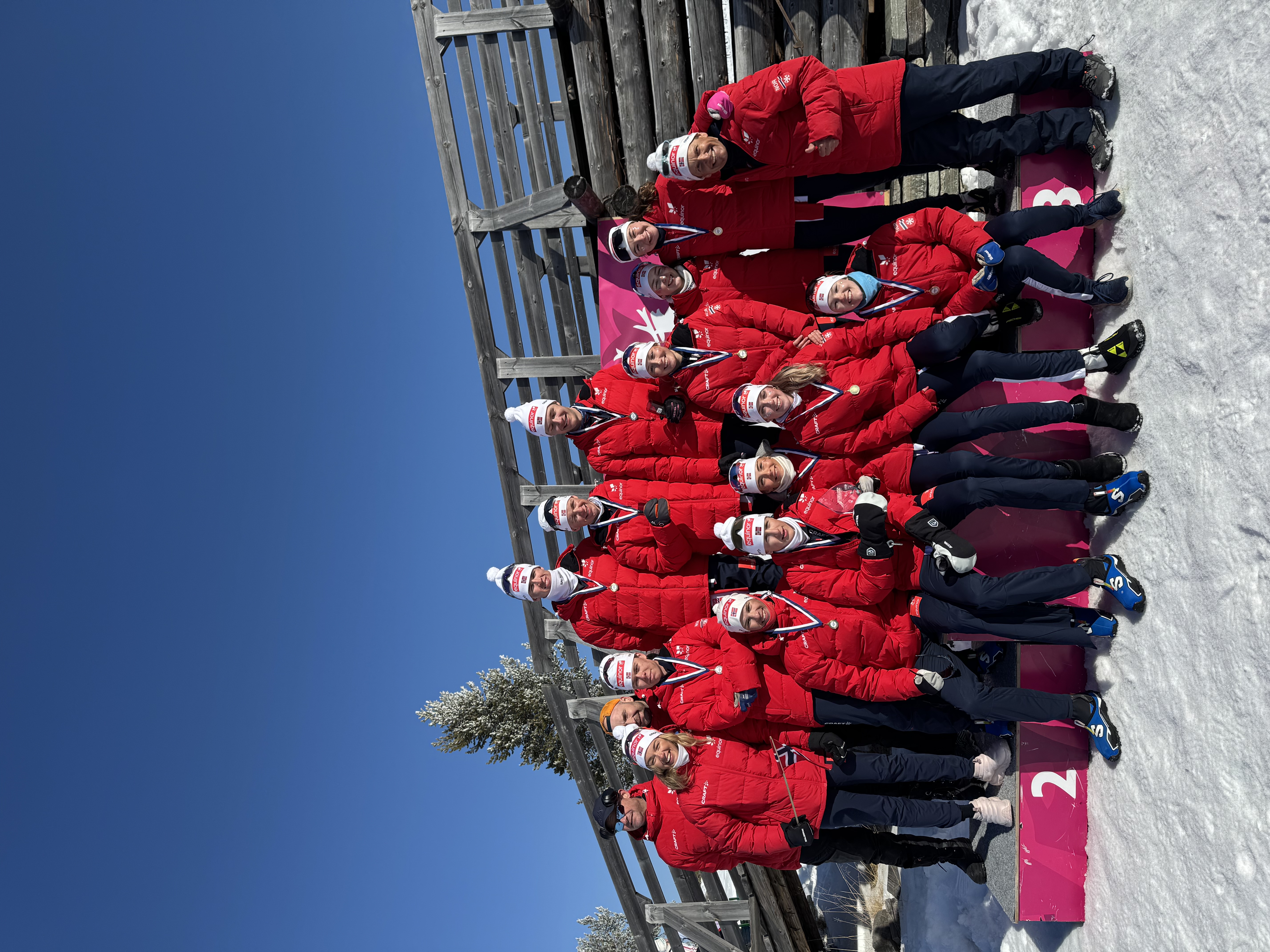 Felles premieutdeling menn og kvinner etter stafett kvinner er i mål.